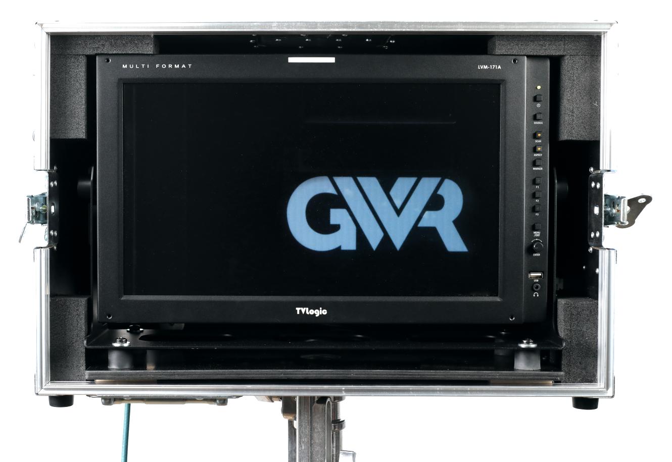 - - Monitor, acrylic protection glass, vMount plate, flight case, 28mm stud